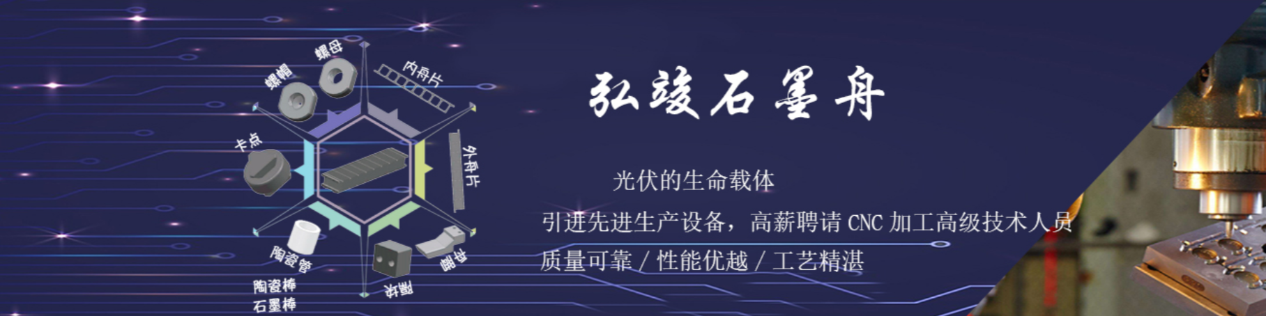 上海弘竣實業(yè)有限公司創(chuàng)建于2010年,是一家集科研、生產(chǎn)、銷售、安裝、服務(wù)為一體的高新科技企業(yè)。公司以雄厚的技術(shù)力量為基礎(chǔ),致力于新能源產(chǎn)品及其主要零部件的研發(fā)、生產(chǎn),同時生產(chǎn)半導(dǎo)體、醫(yī)療器械、精密模具等行業(yè)應(yīng)用的精密石墨制品。主要產(chǎn)品有石墨熱場、PECVD石墨舟、C/C框、燃料電池雙極板、半導(dǎo)體石墨件、光纖用石墨模具。