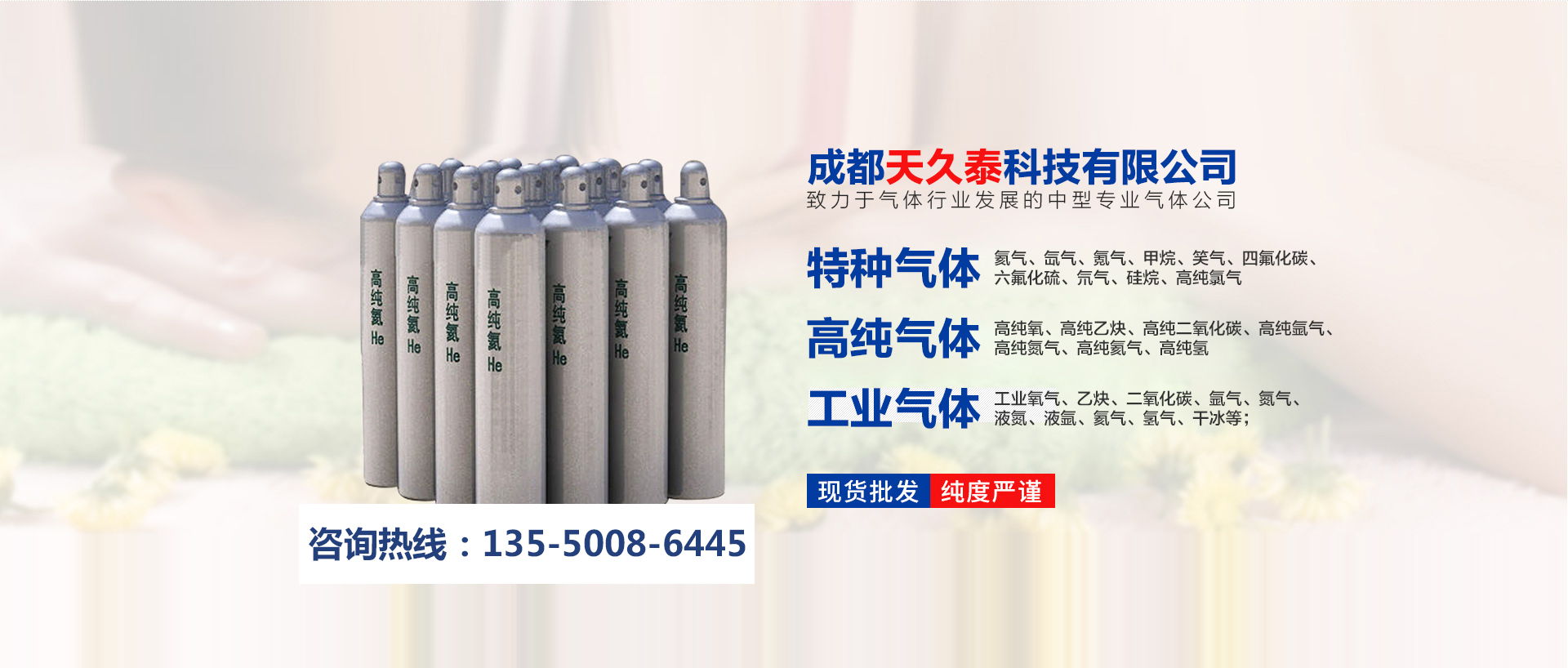 工業氣體:工業氧氣、乙炔、二氧化碳、氬氣、氮氣、液氮、液氬、氦氣、氫氣、干冰等;