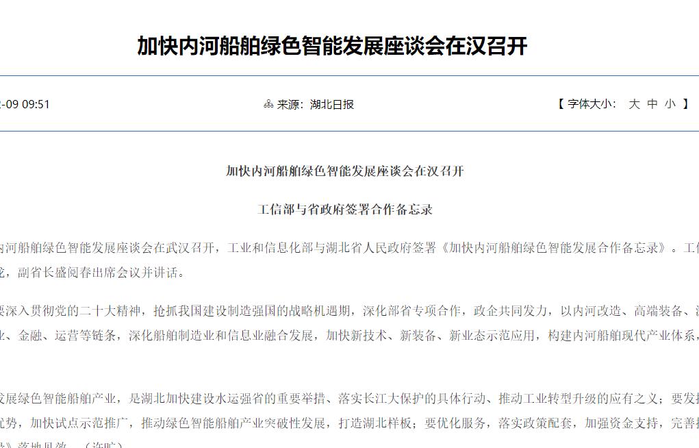 工信部與湖北省政府開展合作,推動氫氨船舶研發