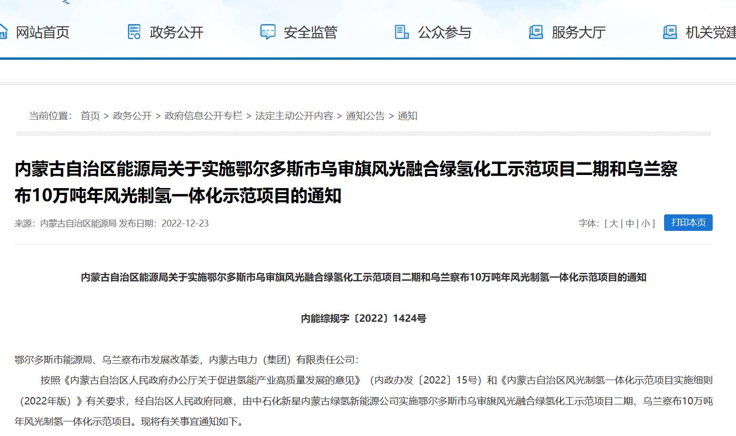 2項(xiàng)涉氫項(xiàng)目總產(chǎn)綠氫12萬噸/年!中石化內(nèi)蒙古項(xiàng)目明年開工