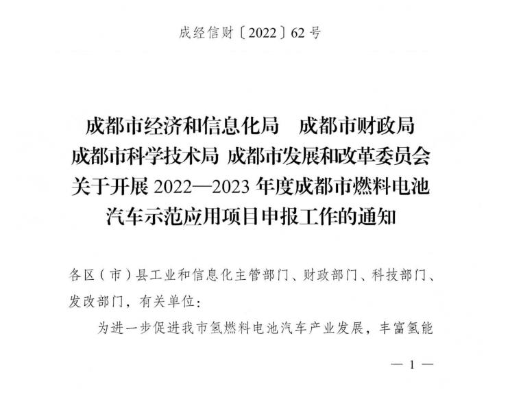 氫車獎(jiǎng)勵(lì)12萬元/輛!成都4部門聯(lián)合啟動(dòng)2022-2023年度燃料電池汽車示范應(yīng)用項(xiàng)目申報(bào)工作
