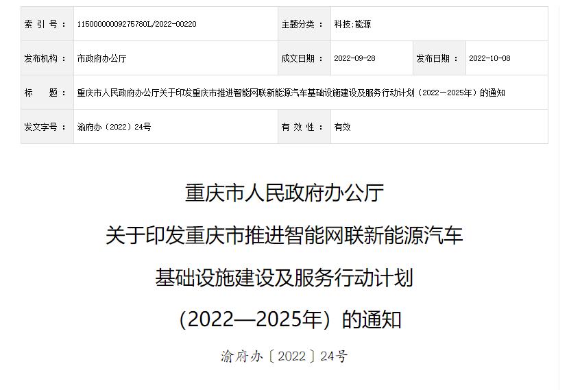 重慶加快氫能網(wǎng)絡(luò)建設(shè)!《重慶市推進(jìn)智能網(wǎng)聯(lián)新能源汽車基礎(chǔ)設(shè)施建設(shè)及服務(wù)行動(dòng)計(jì)劃(2022—2025年)》發(fā)布