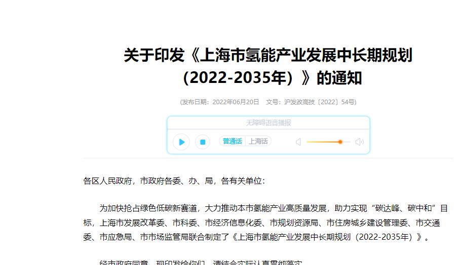 《上海市氫能產業發展中長期規劃 (2022-2035年)》印發!2025年規模突破1000億元