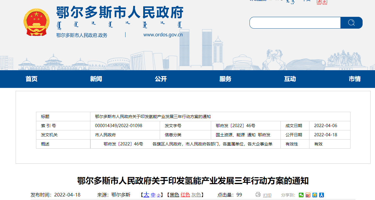 可再生氫產量達20萬噸/年、加氫站60座!鄂爾多斯印發氫能三年行動方案