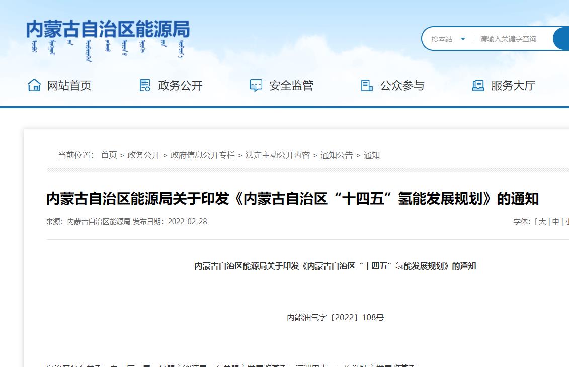2月28日,內(nèi)蒙古自治區(qū)能源局發(fā)布《內(nèi)蒙古自治區(qū)“十四五”氫能發(fā)展規(guī)劃》,總體目標(biāo)指出:到2025年,開展“多能互補(bǔ)+氫”、“源網(wǎng)荷儲(chǔ)+氫”等示范項(xiàng)目15個(gè)以上,氫能供應(yīng)能力160萬噸/年,綠氫占30%以上,加氫站60座;共推廣燃料電池汽車5000輛;建設(shè)氫能應(yīng)用示范項(xiàng)目10余個(gè);培育或引進(jìn)氫能產(chǎn)業(yè)鏈相關(guān)企業(yè)50多家,其中具有一定國際競(jìng)爭(zhēng)力的龍頭企業(yè)5-10家,初步形成一定的產(chǎn)業(yè)集群。