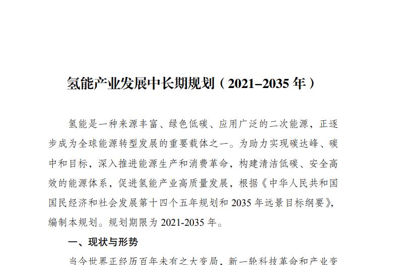 國家發(fā)展改革委、國家能源局聯(lián)合印發(fā) 《氫能產(chǎn)業(yè)發(fā)展中長(zhǎng)期規(guī)劃(2021-2035年)》