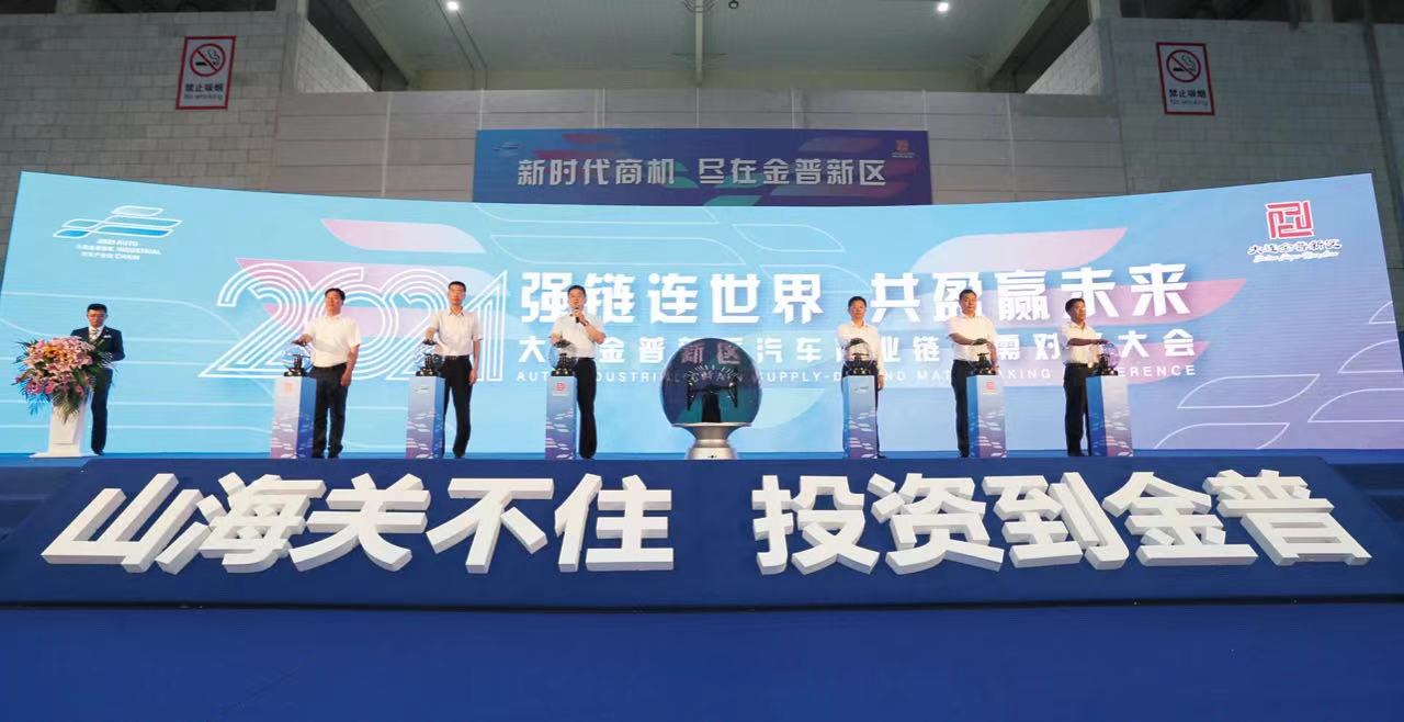 大連金普新區汽車產業供需對接大會在大連自貿區國際會展中心啟幕,會場上展示的一汽大客“海豚精靈”氫燃料電池城市客車引入矚目。