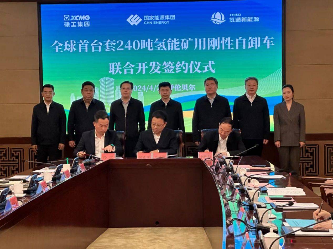 全球首臺套!240噸氫能礦用剛性自卸車聯(lián)合開發(fā)協(xié)議簽署暨項目階段開發(fā)成果驗收工作會議在呼倫貝爾舉行