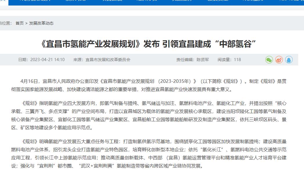 引領宜昌建成“中部氫谷”,宜昌市發布氫能產業發展規劃