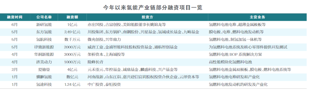 今年1-6月,氫燃料電池汽車產(chǎn)業(yè)鏈公開的大額融資事件達(dá)到10余起,其中愛德曼氫能、東方氫能、新研氫能融資額均在億元以上級別。