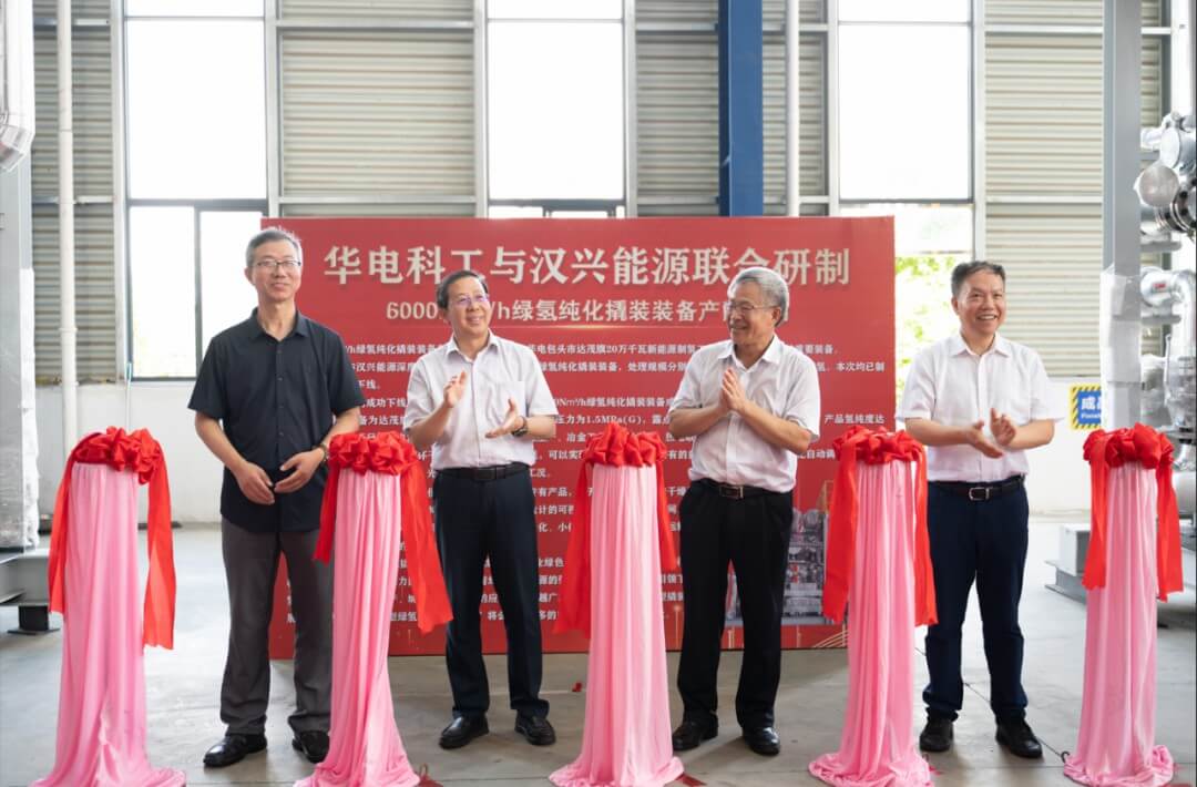 8月1日,中國(guó)華電科工集團(tuán)有限公司(以下簡(jiǎn)稱“華電科工”)與上海漢興能源科技股份有限公司(以下簡(jiǎn)稱“漢興能源”)聯(lián)合開發(fā)的6000Nm3/h電解水綠氫純化撬裝裝備下線儀式暨戰(zhàn)略合作協(xié)議簽訂儀式,在漢興能源靖江制造基地舉行。