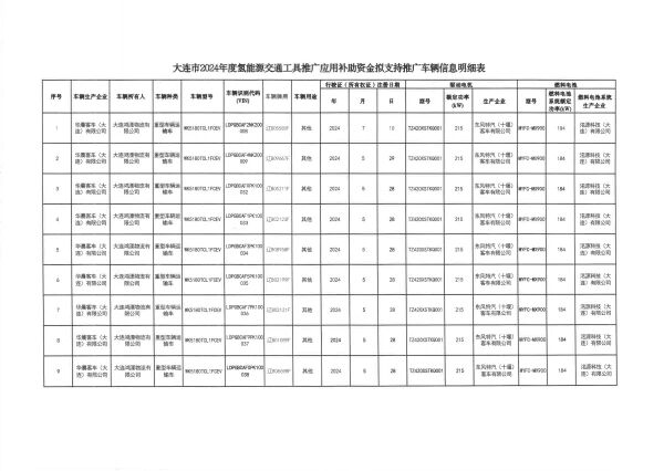 63輛!大連2024年度氫能源交通工具推廣應用補助資金申報項目公示
