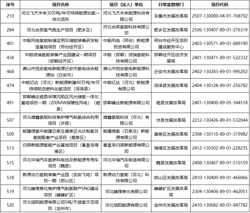 1月4日,河北省發(fā)展和改革委員會發(fā)布河北省2026年省重點建設(shè)項目名單的通知。項目共計747項,總投資1.56萬億元。其中,氫能項目有14項,詳情如下:
