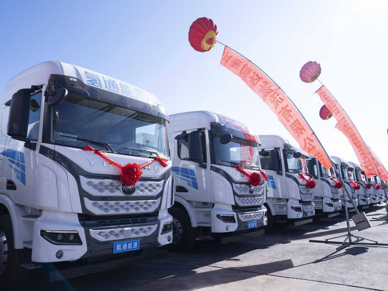 此次發車的300輛49噸氫能重卡,整車由宇通提供,搭載氫通能源130kW燃料電池系統,匹配262度寧德時代鋰電池,在云南多山多坡的復雜工況下,有效提升能量回收與續航能力。車輛儲氫量約37kg,百公里氫耗約8.5-9kg,在49噸標載綜合工況下,續航里程突破600公里,并支持15分鐘快速加氫。交付后,將依托富源縣煤炭智慧物流園區投入到區域煤炭運輸網絡中,形成開放場景下的常態化運營。