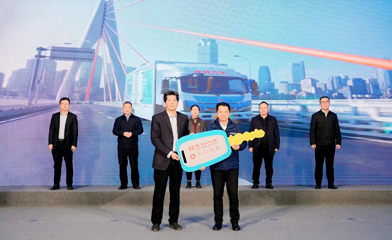 大會現場,慶鈴集團向云韜氫能交付100臺氫燃料電池冷藏車。成渝氫走廊一批標志性重點項目宣布開工及啟動,包括重慶機電集團參與的液態儲氫中試基地項目、“氫進萬家”示范項目等。