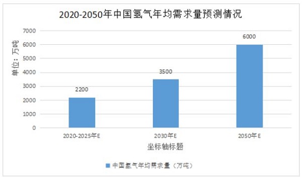 整體而言,中國氫能市場發(fā)展初期(2020-2025年左右),氫氣年均需求約2200萬噸;氫能市場發(fā)展中期(2030年左右),氫氣年均需求約3500萬噸;氫能市場發(fā)展遠(yuǎn)期(2050年左右),氫氣年均需求約6000萬噸。