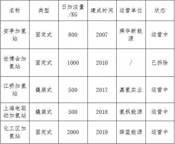 除了化工區(qū)加氫站之外,上海還有4個加氫站在運營,其中3個處于運營狀態(tài),1個被拆除。