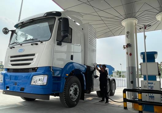 他說,根據(jù)國家甲級燃料電池測試標準,深圳國氫新能源在深圳設(shè)立了測試實驗中心,堅持自主創(chuàng)新和技術(shù)開發(fā),部分領(lǐng)域國產(chǎn)化率達到100%。目前已形成完整的產(chǎn)品鏈,燃料電池系統(tǒng)產(chǎn)品功率覆蓋30kW-135kW,均已完成國家強制檢驗認證,具備批量裝車能力,基本實現(xiàn)了燃料電池在商用車領(lǐng)域的應(yīng)用需求。在燃料電池動力系統(tǒng)產(chǎn)品的應(yīng)用方面,深圳國氫新能源與國內(nèi)多家一線汽車廠聯(lián)合推出了物流車、環(huán)衛(wèi)車、重型卡車、公交車等車型。據(jù)王成林介紹,自2019年以來,配備國氫燃料電池動力系統(tǒng)的中重型物流車已在大灣區(qū)大規(guī)模商業(yè)化市場運營,累計行駛里程近百萬公里。2021年,天津首批49T氫能重型卡車交付已完成。