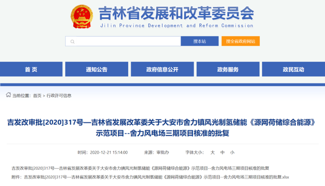 近日,吉林省發(fā)改委發(fā)布關(guān)于大安市舍力鎮(zhèn)風(fēng)光制氫儲能《源網(wǎng)荷儲綜合能源》示范項目—舍力風(fēng)電場三期項目核準(zhǔn)的批復(fù)。