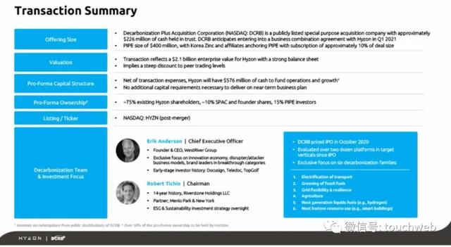 此次交易將為Hyzon Motors提供大約6.26億美元的資金,其中包括以每股10.00美元的價格認購4億美元完全承諾的普通股PIPE。