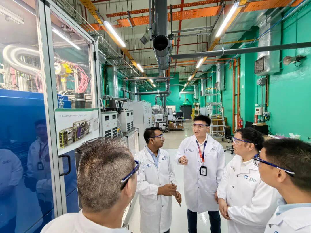 下午工作團前往位于大士灣新加坡勝科集團環境公司(SembWaste)場內的氫電耦合發電廠項目現場進行了進度調研。