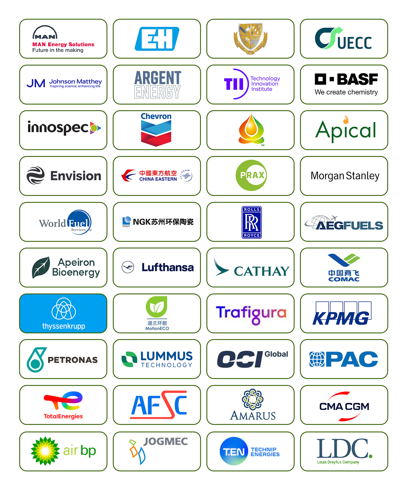 中國(guó)民航局航油航化適航審定中心、通用電氣航空航天公司、德博能源、德勤、西門子能源、霍尼韋爾UOP、中國(guó)船舶集團(tuán)有限公司、中石化石油化工科學(xué)研究院、挪威船級(jí)社、波音、中國(guó)質(zhì)量認(rèn)證中心、Axens、SEA-LNG