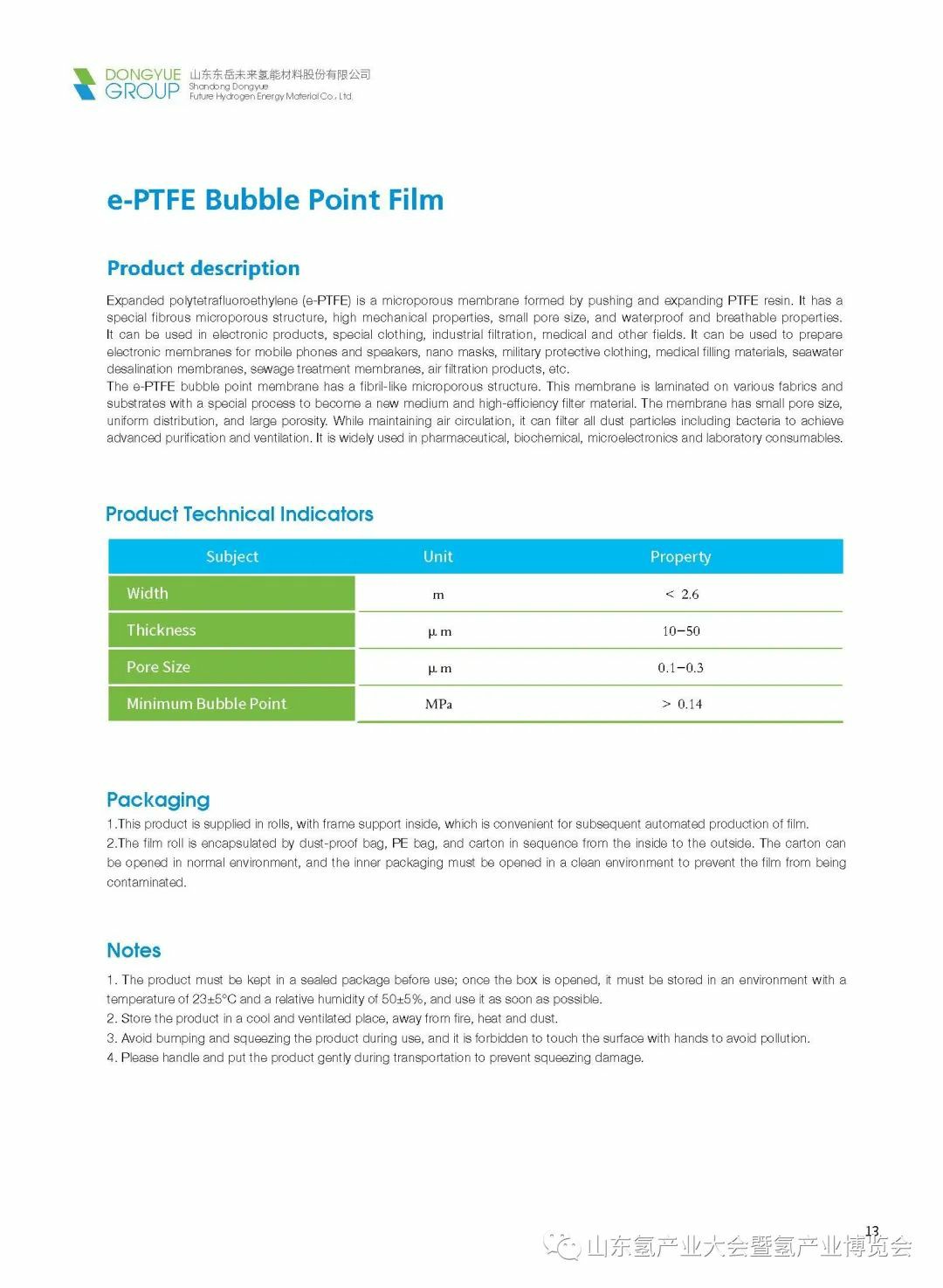 山東東岳未來氫能材料股份有限公司成立于2017年12月19日,主營業務為高性能燃料電池膜等氫能材料、高性能含氟聚合物以及高端含氟功能膜等產品。