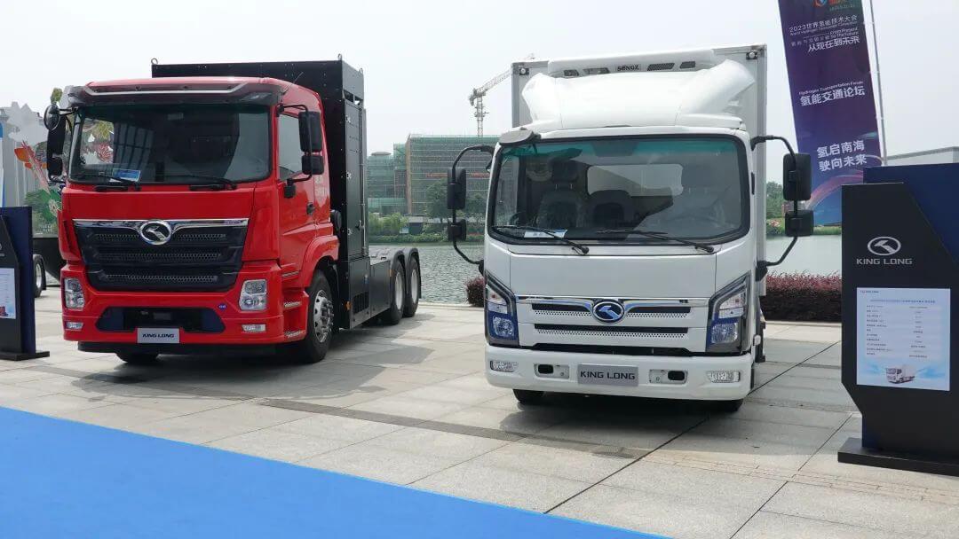 5月23日,2023世界氫能技術(shù)大會(WHTC2023)在廣東省佛山市舉辦。金龍客車攜4.5噸燃料電池冷藏車與49噸氫燃料電池牽引車參展,展示氫能在商用車上的系列創(chuàng)新應(yīng)用成果。