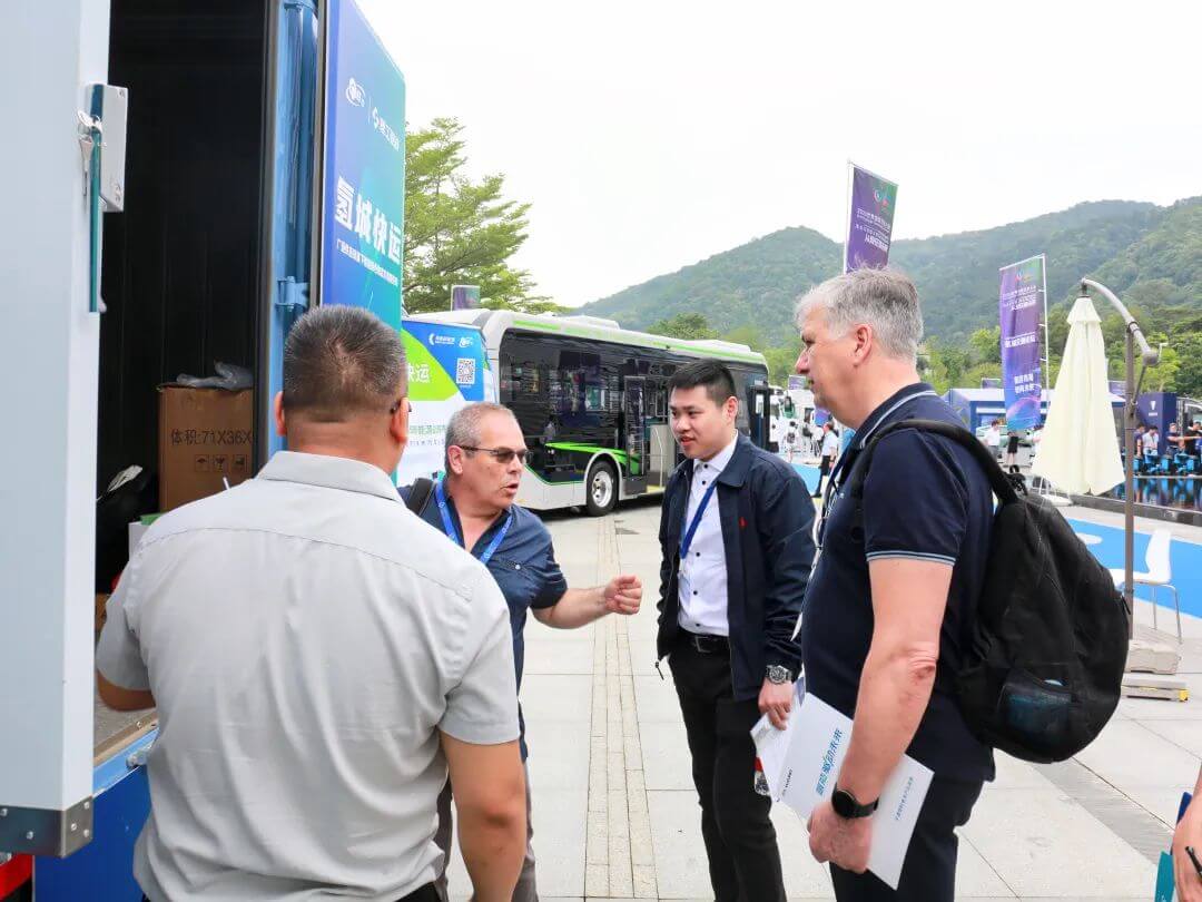 在本次大會上,昇輝新能源重點展示了自主研制的佛山首臺套堿性電解水制氫裝備及大規模制氫配套電氣設備整流柜、能夠實現“移動方艙+一車多溫區”的4.5噸氫能冷鏈車,以硬核產品,直觀地展示企業完整的氫能產業生態,體現公司綜合硬實力,吸引了不少觀眾駐足咨詢。其中,更是吸引了“氫能市長”許國,國際氫能協會(IAHE)副主席毛宗強教授,歐陽明高院士核心團隊、清華大學長聘教授楊福源等大咖前來展館交流。