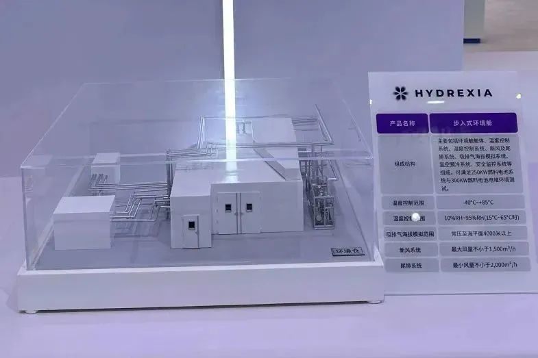 我們擁有專業的測試團隊及定制化測試設備,以獨特的測試能力提供可靠的氫燃料電池測試數據?,F場展示的二合一環境倉,同時具備燃料電堆及系統的測試能力,以更大的艙內體積、穩定式溫度均勻性、氫空預冷為主要特點,與同行業測試設備形成差異化優勢。