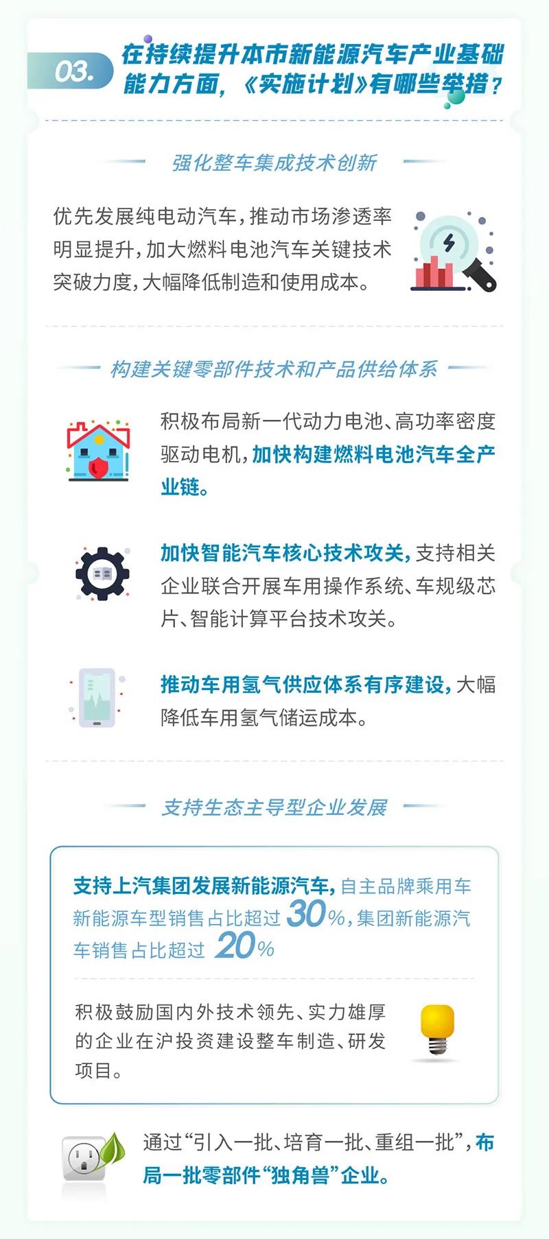 《實施計劃》還提出,支持生態(tài)主導(dǎo)型企業(yè)發(fā)展。支持上汽集團發(fā)展新能源汽車,至2025年,自主品牌乘用車新能源車型銷售占比超過30%,集團新能源汽車銷售占比超過20%。通過“引入一批、培育一批、重組一批”,打造若干銷售規(guī)模達到百億級的“獨角獸”企業(yè)。