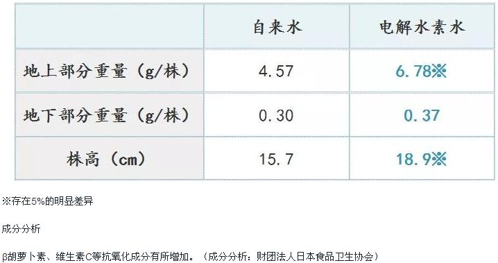 用電解水素水栽培的小松菜和蘿卜苗,其氧化應激指標“丙二醛”明顯下降了。由此可見,電解水素水的催生機制是與其抗氧化作用所帶來的氧化應激水平下降存在關聯。