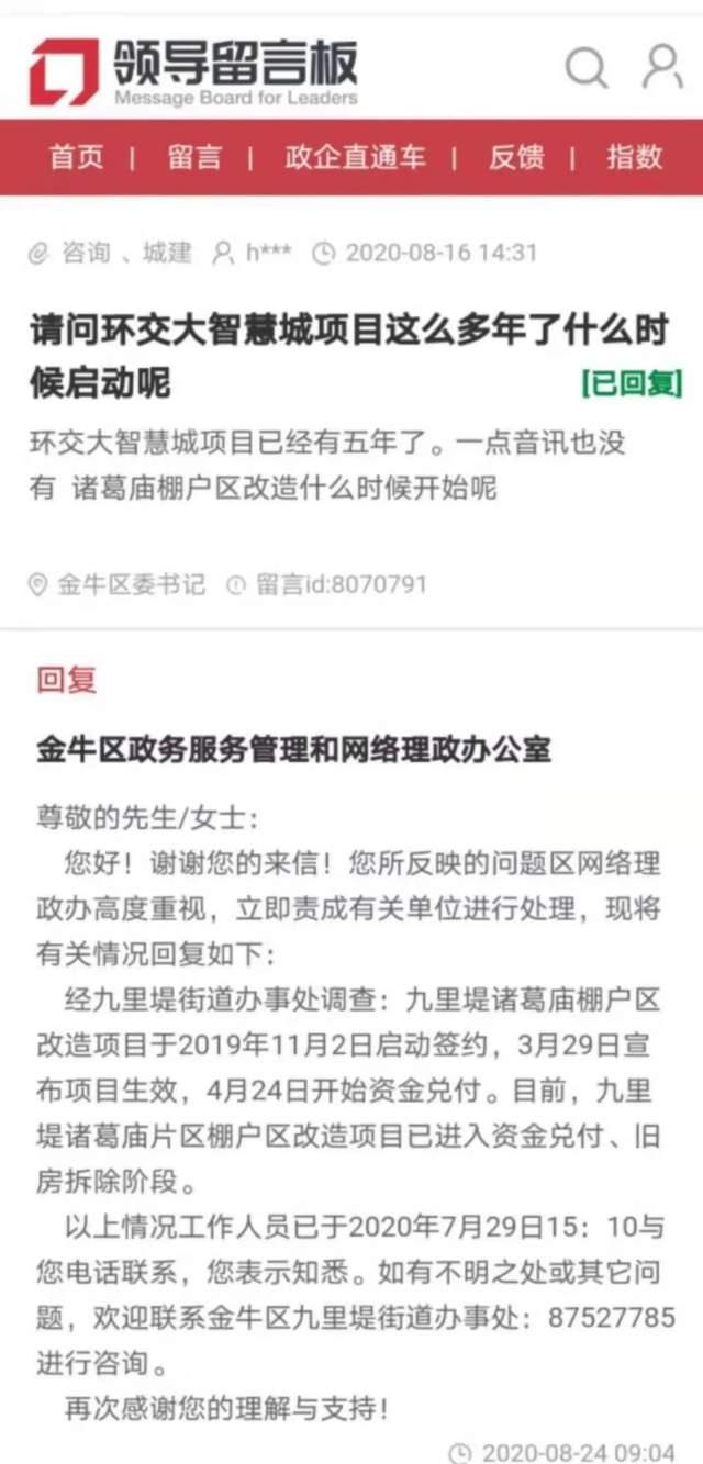 雖然新都區與西南交大的全面合作比金牛區晚了三年,但已經能看到企業落地,而且還有氫能技術省外輸出等成果顯現,而金牛區的「環交大智慧城」卻遲遲未見動靜,以至于去年8月份,有人到人民網領導留言板上詢問項目啟動時間。