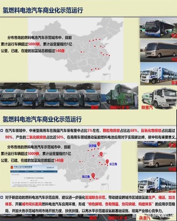 中重型商用車在我國汽車保有量中占比5%左右,但顆粒排放物占比達到68%,氮氧化合物占比甚至超過90%。從它消耗成品油的比例來看,二氧化碳排放要占50%左右,因此在商用車領域推動氫能燃料電池應用,對實現碳達峰、碳中和有十分重要的意義。