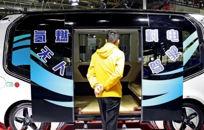 (2020年11月11日,2020世界智能網(wǎng)聯(lián)汽車大會上展出的氫燃料電池無人駕駛車。圖/視覺中國)