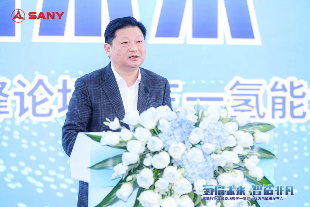 三一集團黨委書記、輪值董事長向文波致辭表示,三一集團正在舉全集團之力實施全球化、數智化、低碳化轉型戰略。圍繞國家要求及行業發展現狀,三一氫能統籌聚力、創新聚能、研發聚焦,在規模化風光綠電制氫的新場景下提出新方案,并在風光綠氫示范項目上率先使用,成功攻克大型電解槽技術挑戰,在氫能裝備工業化進程中邁出堅實一步。