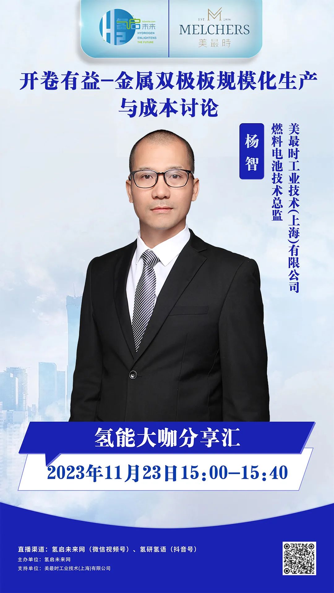 為了深入探尋金屬雙極板發(fā)展,美最時工業(yè)技術(上海)有限公司燃料電池技術總監(jiān)楊智先生將做客氫啟未來網直播欄目《氫能大咖分享匯》,在線與大家分享《開卷有益-金屬雙極板規(guī)模化生產與成本討論》主題報告。
