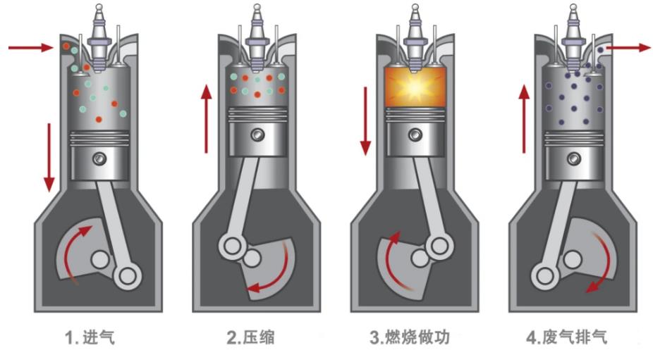 高溫高壓的燃氣推動活塞運動,從而轉動曲軸