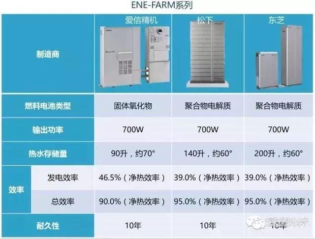 ENE-FARM項(xiàng)目主要燃料電池型號(hào)