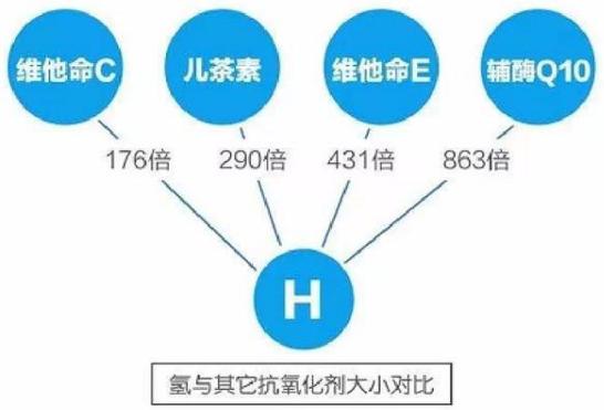 氫有超強(qiáng)抗氧化能力,能有效清除帶來(lái)各種肌膚問(wèn)題的活性氧自由基,在細(xì)胞層面將之轉(zhuǎn)化為水。氫的抗氧化能量是輔酶Q10的863倍、兒茶素的290倍、維他命C的176倍、維他命E的431倍、多酚類(lèi)221倍。無(wú)論是Q10、維C等分子均比H大很多,都無(wú)法快速滲透至細(xì)胞內(nèi)部,并且有服用禁忌及過(guò)量的副作用,而氫則無(wú)任何副作用。
