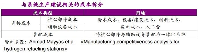 加氫系統相關部件可直接采購組裝,成本可分為設備成本和人工成本。