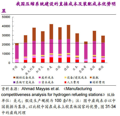 (3)我國加氫站儲氫系統的建設成本優勢仍來自于中國低廉的勞動力成本。