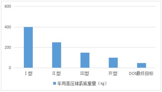 不同車用高壓儲氫罐類型的重量(按照儲氫5kg對比)