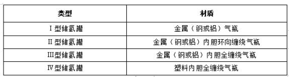 表1 儲氫罐的材料和類型