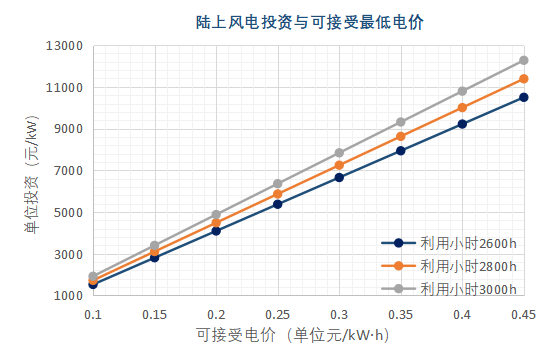 在保證風、光項目合理收益率的前提下,風、光資源稟賦優越地區已可以實現0.25元/kW·h左右供電價格。但是,考慮到綠電制氫系統需要配置較高比例儲能系統,在當前投資水平下,實現0.2元/kW·h以下供電價格較為困難。風電、光伏造價與其可承受電價如圖所示。
