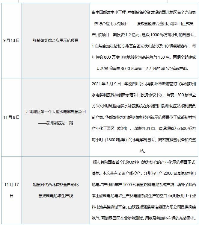網絡公開信息顯示,今年1月到11月,國內制氫環節項目簽約、開工建設消息頻發,項目總數量超過60個。11月,就有超過15個制氫項目發布新進展,范圍覆蓋內蒙古、四川、黑龍江、湖北、河北等地區,總投資額超過1100億元。其中不乏東方電氣、三一集團、國家電投集團等實力強勁的企業,預計到明年,會有更多項目落地,氫能產業將會在這些企業的帶領下更進一步。