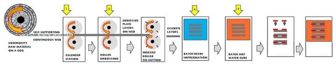 此工藝使用膨脹石墨材料,產品具有較高的導電性和熱傳導性。該工藝也能有效滿足雙極板外形、表面幾何輪廓和機械尺寸的要求。
