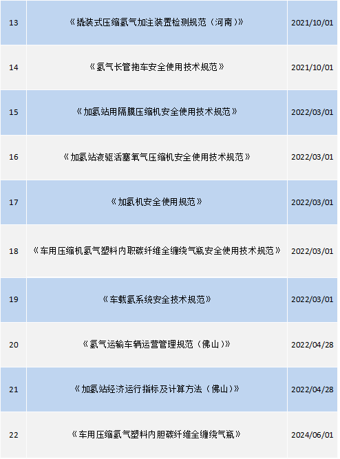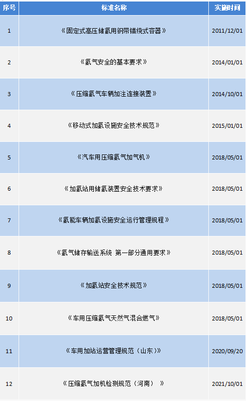 行業標準方面,已經有以下與高壓氣態儲氫有關的標準發布: