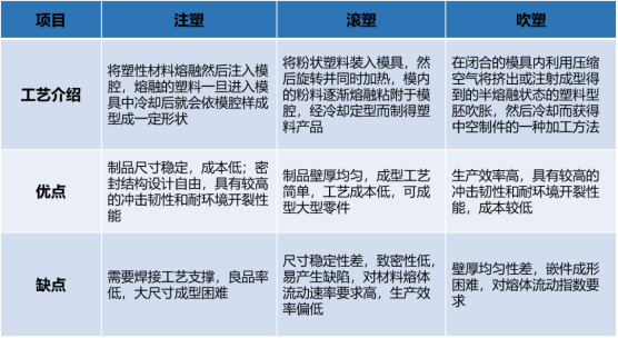 不過,IV型瓶內膽的成型工藝主要為注塑、吹塑和滾塑成型。雖然成本低、運用較廣泛,但良品率也較低,且必須配合后續的焊接工序。