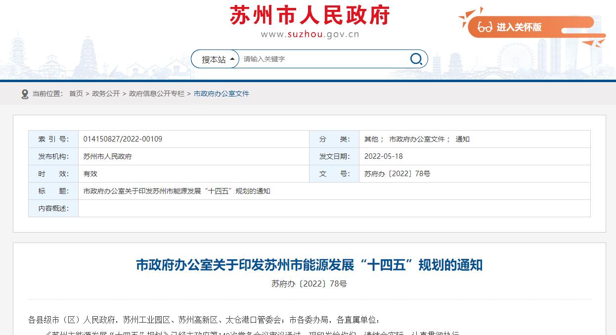 近日,蘇州市人民政府印發(fā)《蘇州市能源發(fā)展“十四五”規(guī)劃》,其中提到: